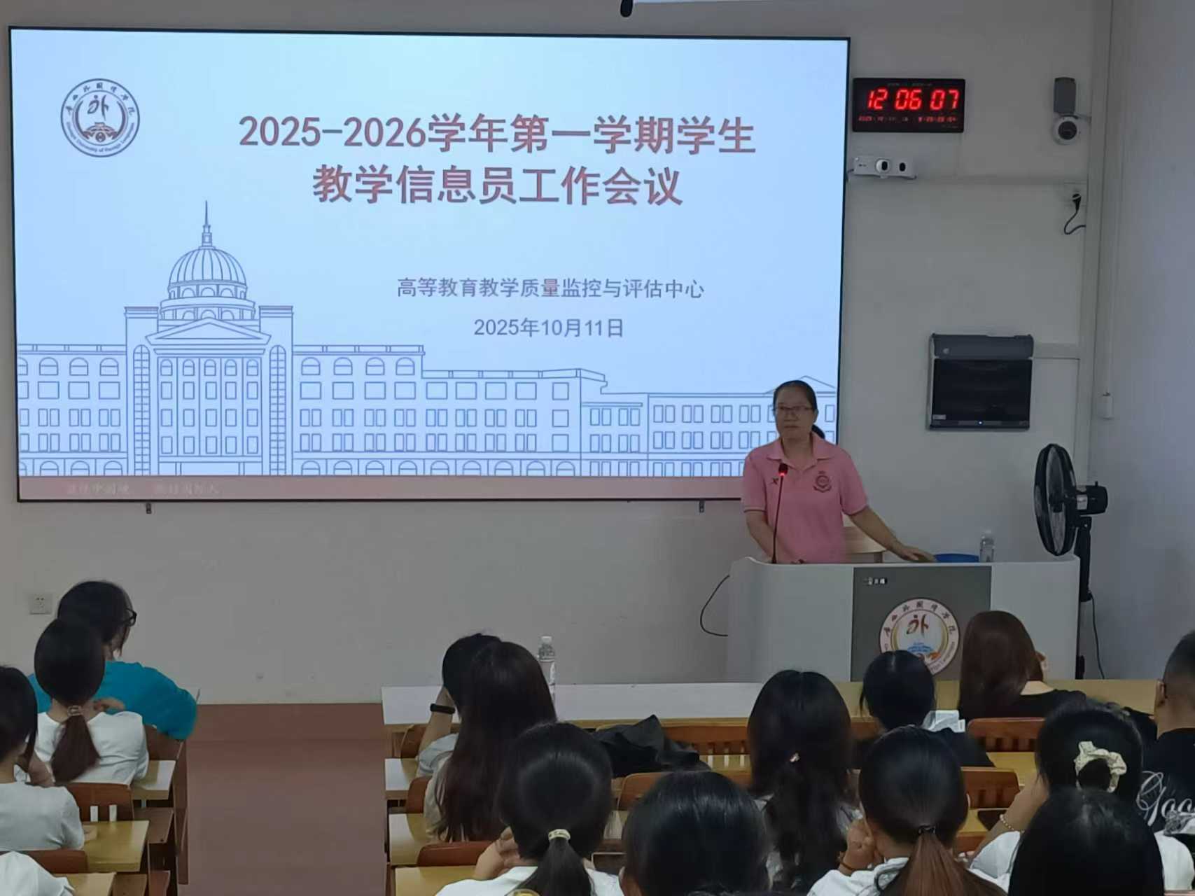 近日,为了进一步做好学生教学信息员的管理工作,强化信息员的主体责任意识,高等教育教学质量监控与评估中心组织2022级—2024级学生教学信息员召开工作会议。中心主任陈曦出席此次会议,会议由张路明老师主持。