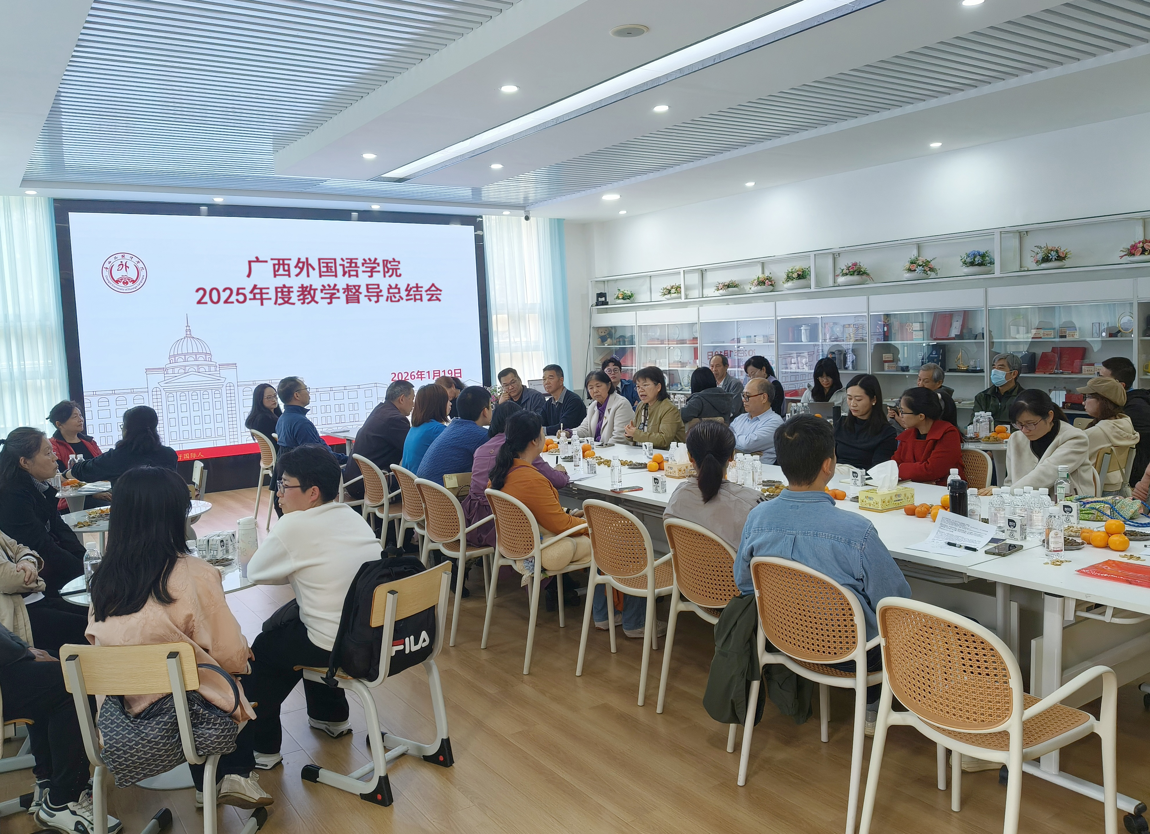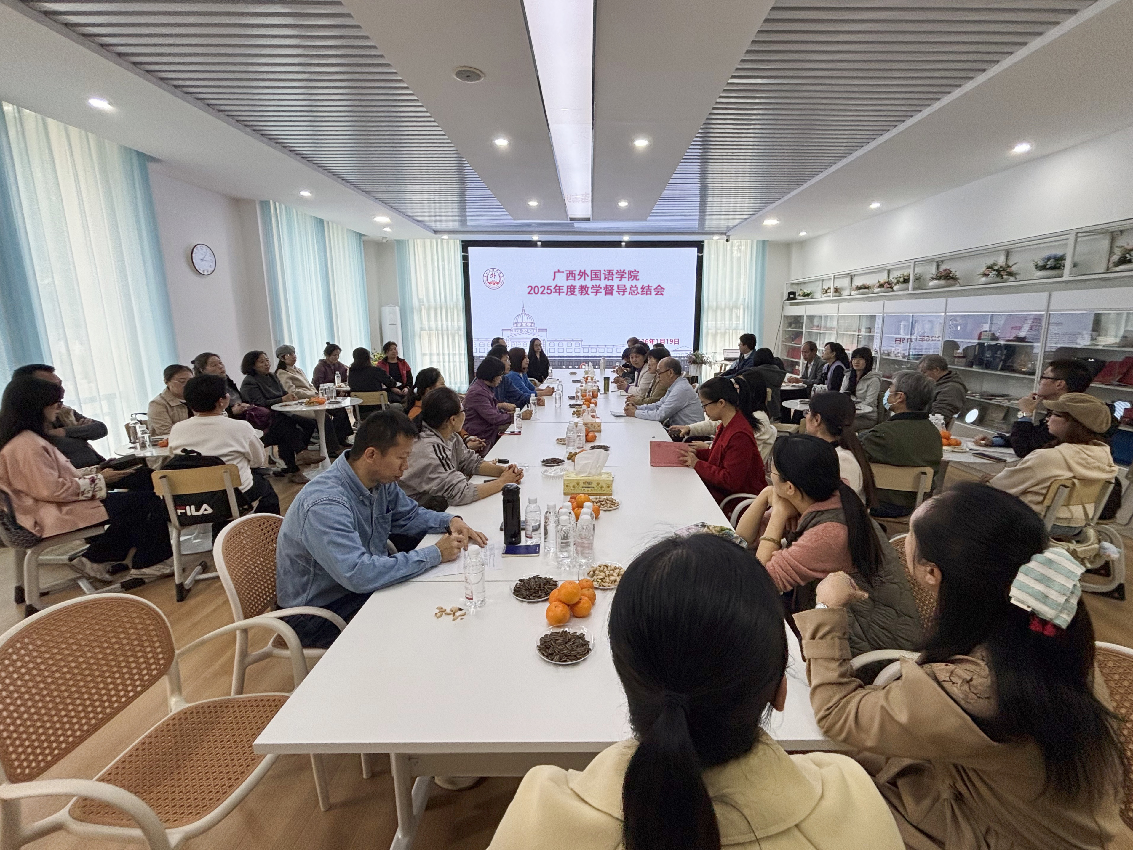 为全面复盘本学期教学督导工作成效,精确规划下一阶段工作重点,2026年1月19日,广西外国语学院在校友文创中心召开2025年度教学督导总结会。执行校长吕玲丽教授出席会议,学校全体教学督导、高等教育教学质量监控与评估中心相关人员参加会议,会议由总督导宋亚菲教授主持。